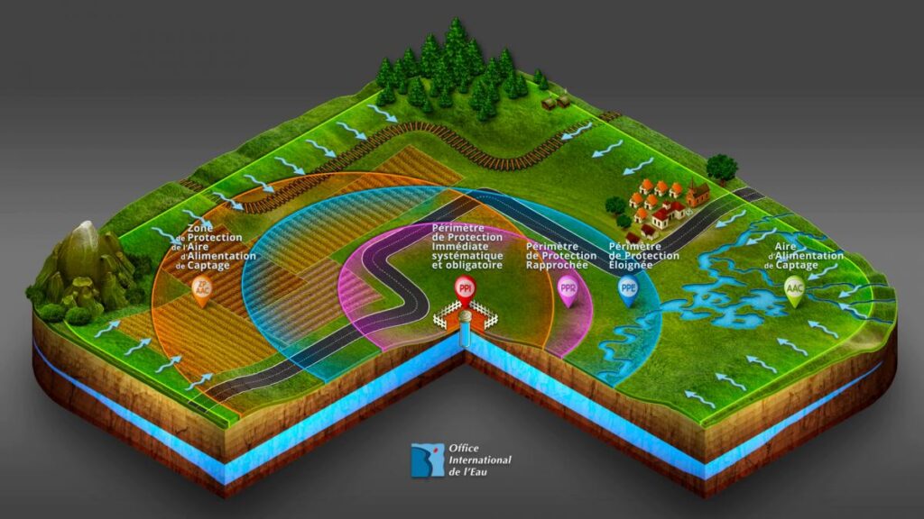 Ces périmètres et zones assurent une protection multi-niveaux pour garantir la qualité des eaux souterraines, en agissant à la fois sur les sources immédiates de pollution et sur l’ensemble de l’aire d’alimentation du captage.
