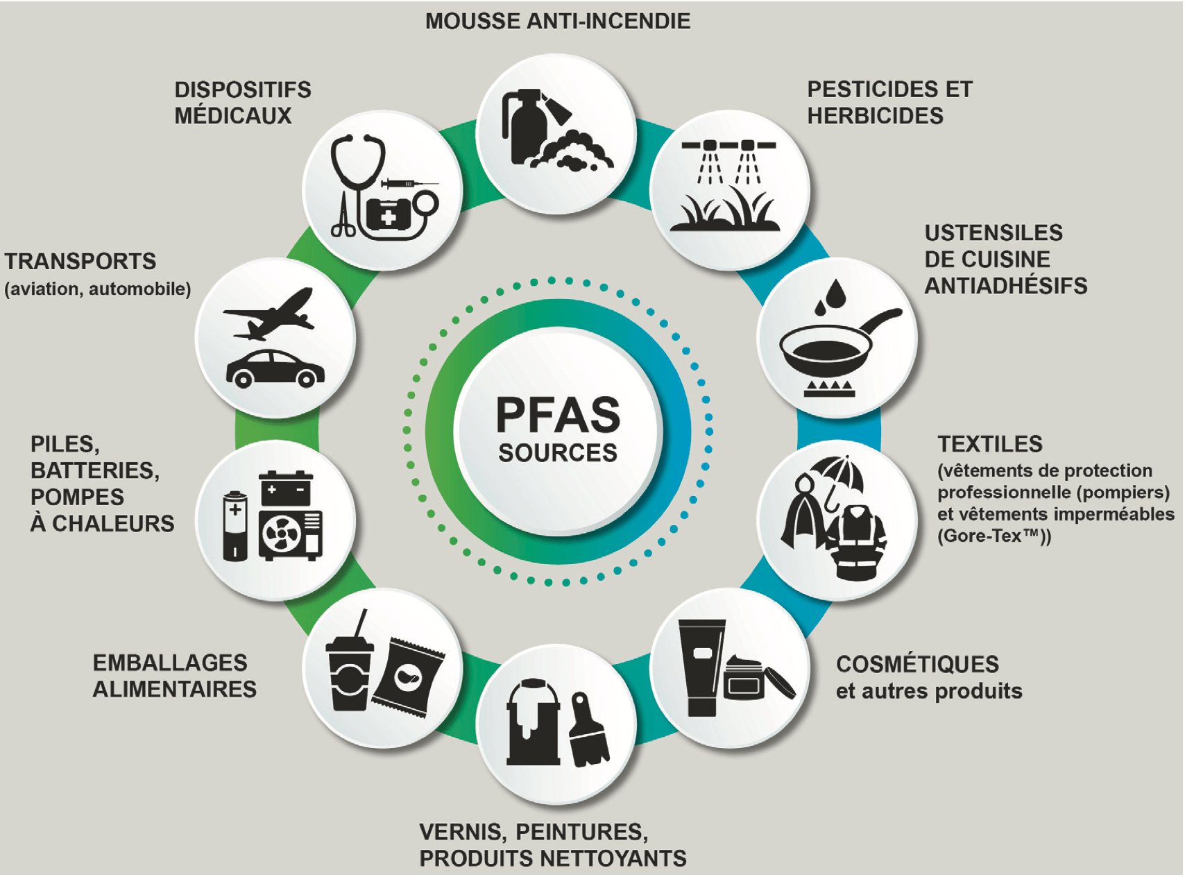 En raison de leur utilisation étendue dans de nombreux produits industriels et de consommation, les PFAS proviennent de diverses sources. Voici les principales origines :